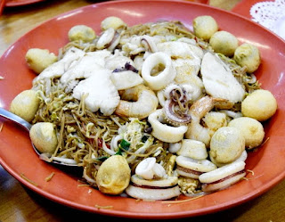 | The yummy signature seafood mee sua with a ton of quail eggs. |